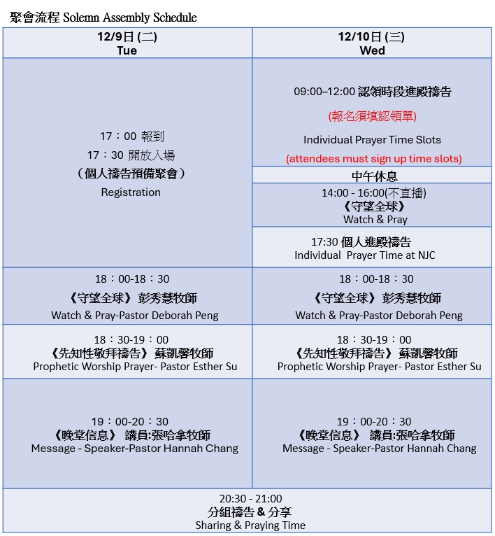 我們一同在 神寶座前,自潔、堵住破口、恢復關係,以禁食禱告同心進入屬靈爭戰的軍隊。